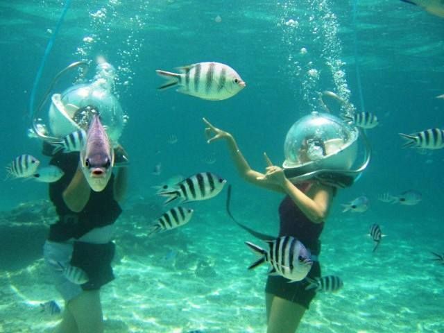 Walk on the ocean floor wearing a special helmet and breathe normally while exploring corals and marine life—safe, easy, and perfect for non-swimmers.