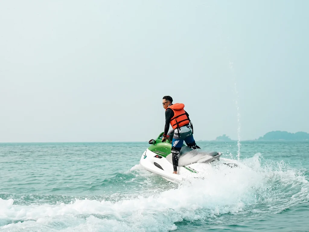 A high-speed water adventure riding over the waves, offering thrills, sea spray, and stunning coastal views—perfect for adrenaline lovers.